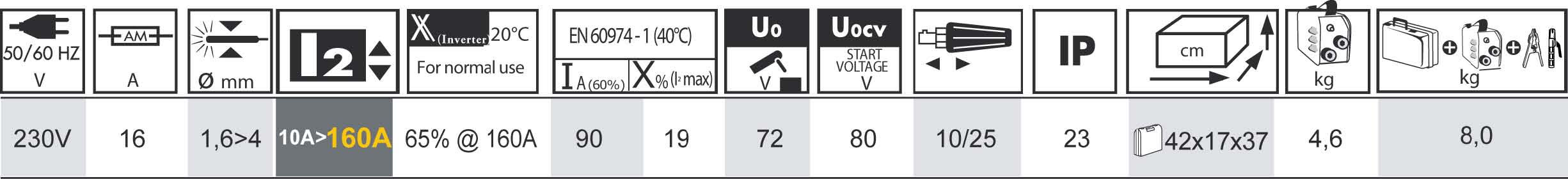 MMA : the product arc dynamic is revolutionary and unique on the market. Basic electrodes no longer cause trouble. This product does not only integrate Arc Force and Anti Sticking functionality but it is also the only single phase welding unit on the market to offer an adjustable Hot Start for all types of electrodes